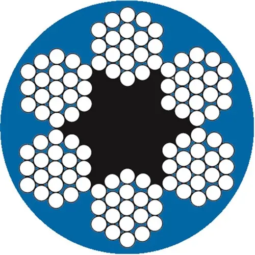 Fibre-core galvanised wire rope, coated by blue coloured PVC, manufactured by Beaver.