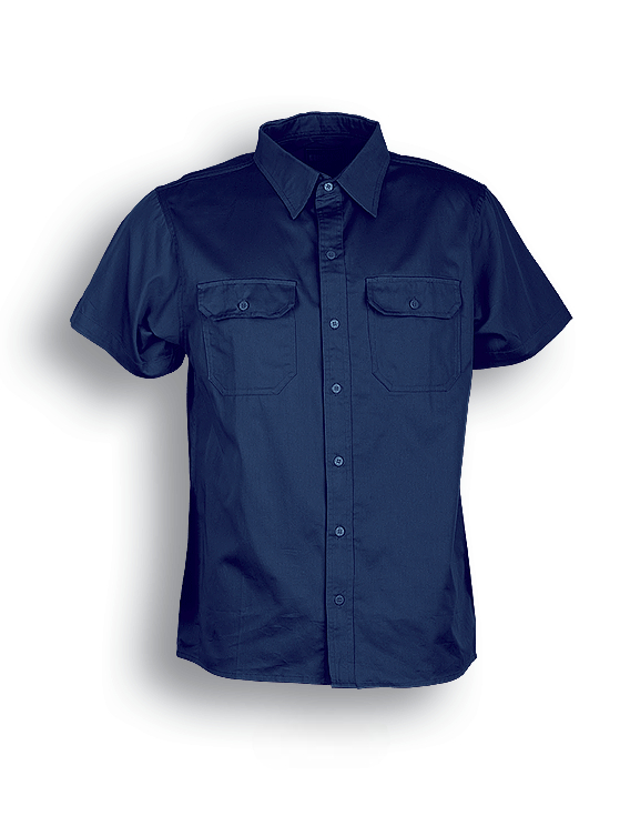 Cotton Drill Short Sleeve Work Shirt With Two Front Chest Pockets